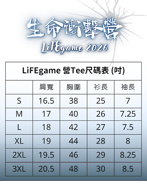 營Tee尺碼表