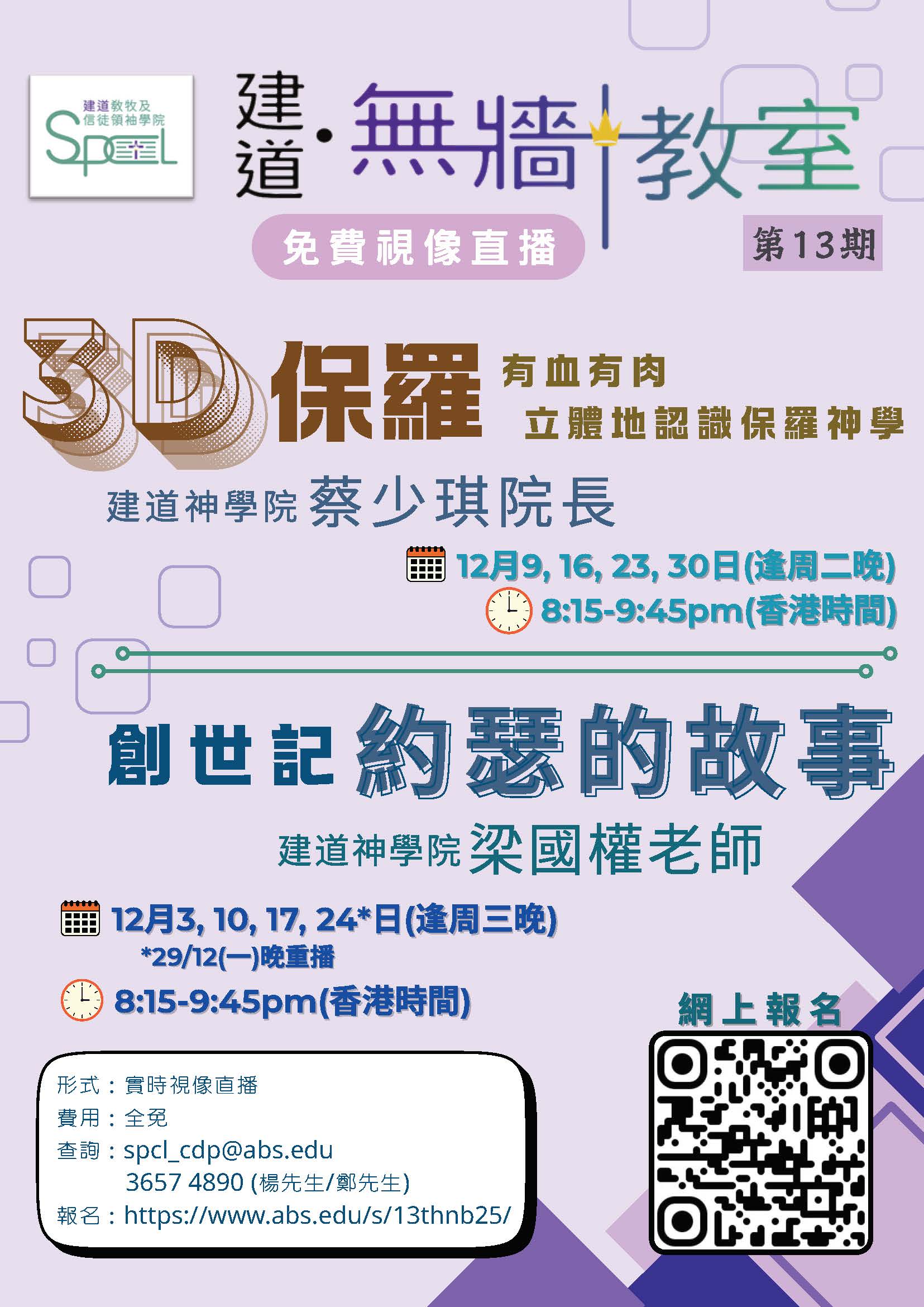 2025年12月3,10,17,24*日 逢周三8:15-9:45pm(香港時間)